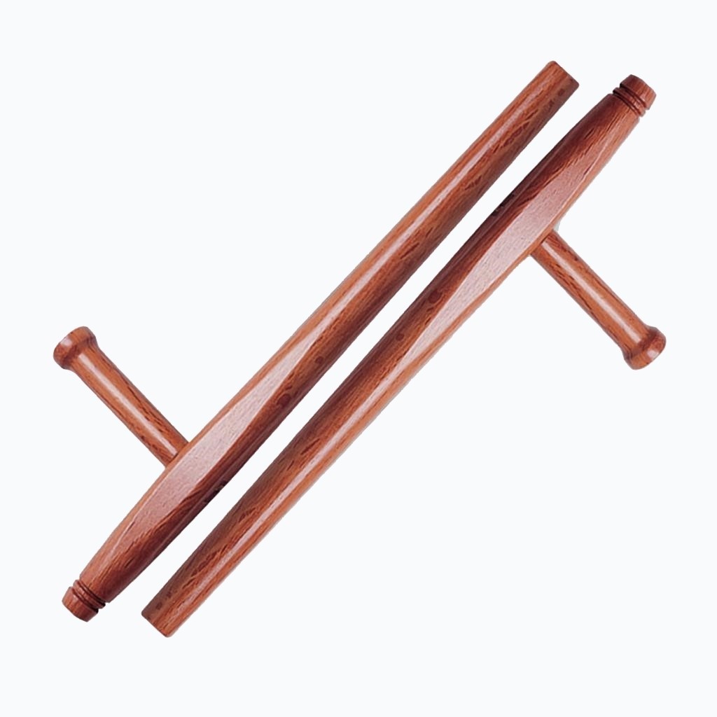 It is one of the traditional weapons of Asian martial arts basically made up of two short sticks, generally between 30 and 60 cm long, joined at their ends by a rope or chain. The nunchaku is mainly used in striking and blocking actions; however, it can be used as a complement to various sweeping, trapping, disarming, dislocation and strangulation techniques.